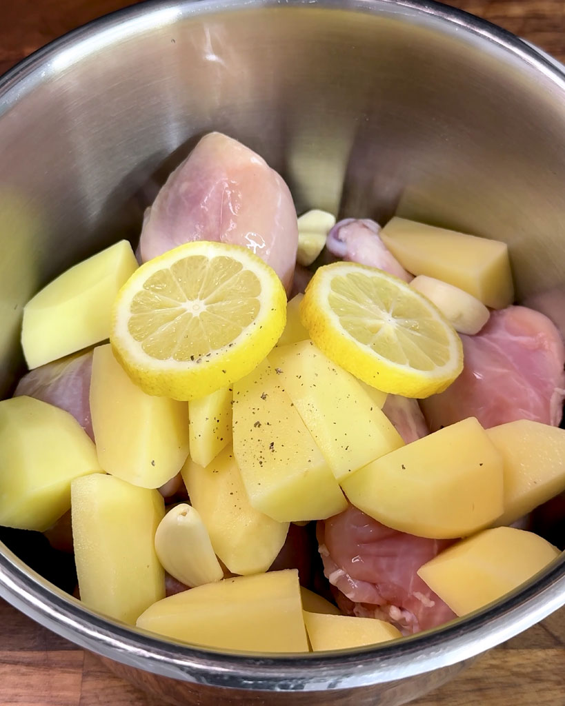 - Step 1: Cook chicken & potatoesIn a pot, add:Chicken legs Potatoes Garlic Lemon slices Salt & black pepperAdd water and cook until everything is softStep 2: Prepare fillingRemove chicken and separate meat from bones (keep bones aside)Mash potatoes in a bowlAdd to potatoes:Shredded chicken Garlic Salt & black pepperPaprikaChili paste Fresh cheese Grated cheeseMix everything wellStep 3: ShapeTake a portion of the mixtureInsert the chicken bone insideShape like a chicken legStep 4: CoatDip in beaten eggs Coat with breadcrumbsStep 5: FryFry in hot oil until golden and crispy